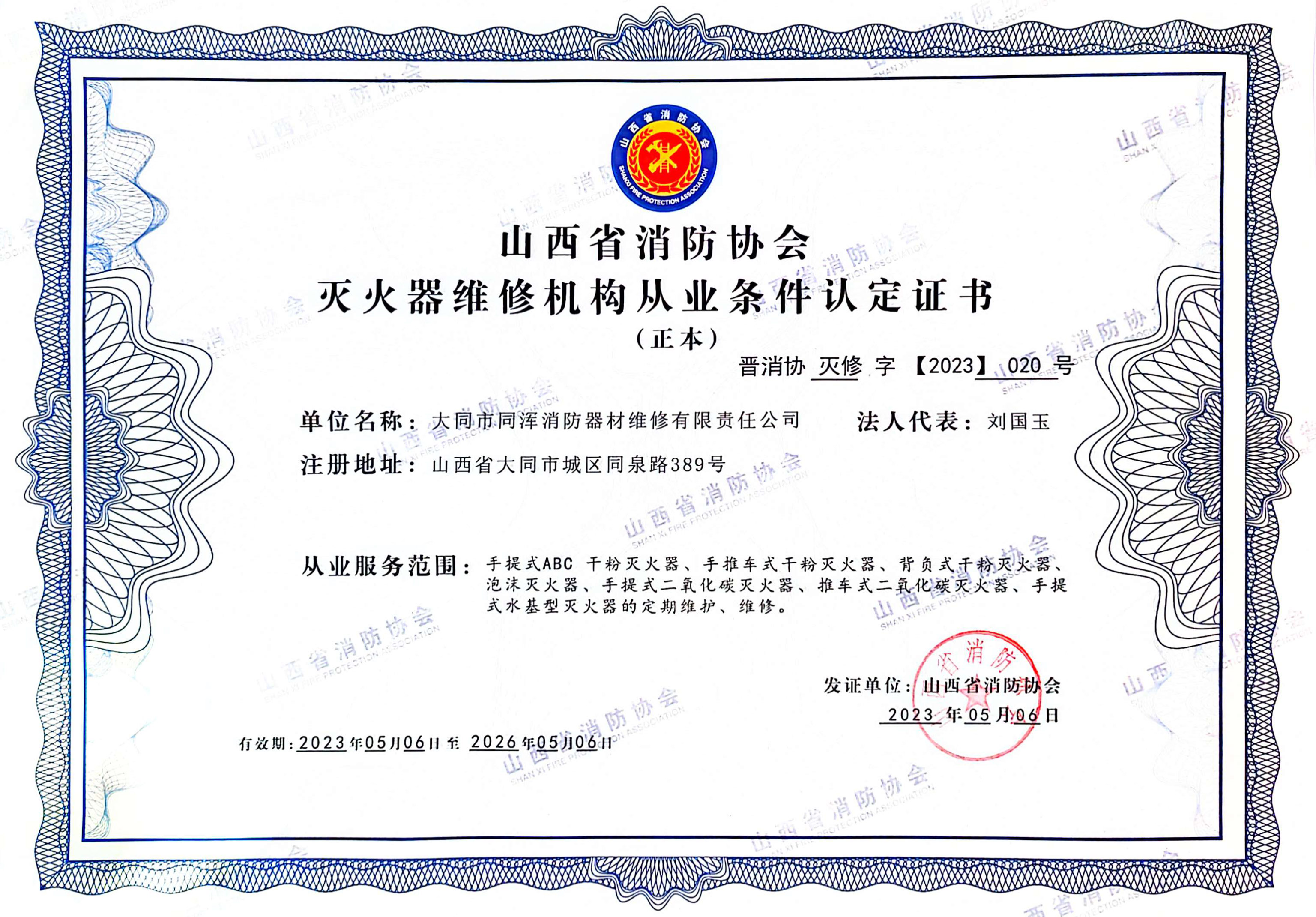 大同市同渾消防器材維修有限責(zé)任公司,位于大同市同泉路389號,始建于2000年,是公安部消防局定點(diǎn)銷售和維修的企業(yè),歷經(jīng)多年的創(chuàng)建、發(fā)展和拼搏,現(xiàn)有多家消防器材廠商供應(yīng)我公司,并有現(xiàn)代化維修設(shè)備,標(biāo)準(zhǔn)的廠房,嚴(yán)格的管理,優(yōu)良的設(shè)備,良好的服務(wù)并受到各行各業(yè)的好評。總經(jīng)理劉國玉嚴(yán)格管理,嚴(yán)格要求,精益求精,認(rèn)真負(fù)責(zé),帶領(lǐng)團(tuán)隊(duì)熱烈歡迎各界朋友顧客光臨。